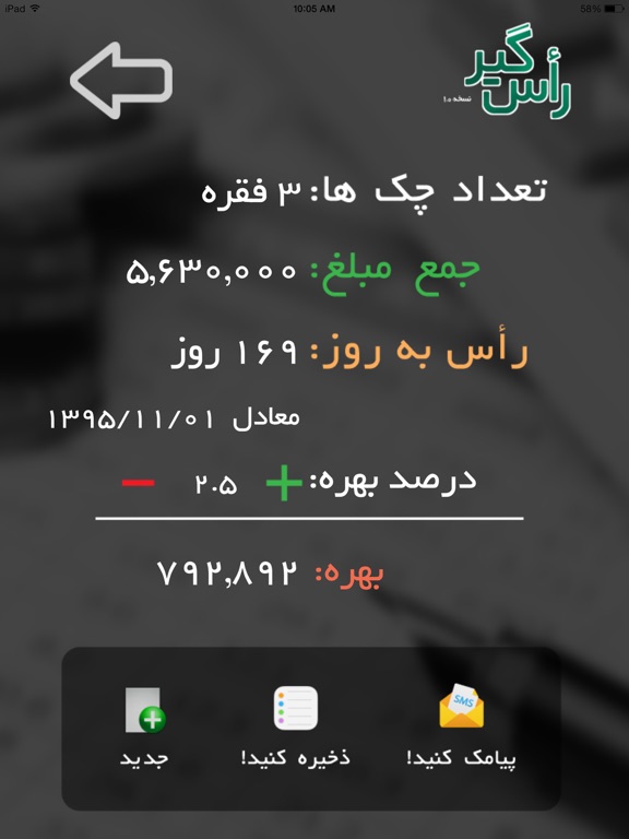 - قابلیت پیدا کردن رأس چندین چک به همراه محاسبه سود با درصد دلخواه کاربر.