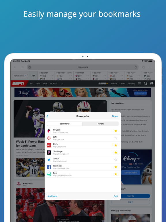• BOOKMARKS - Save the sites you go to the most for quick access.