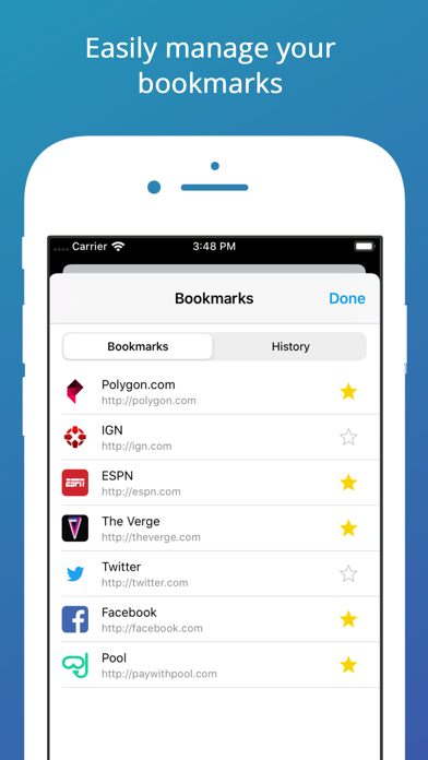 • EASY TO USE TABS - Open tabs to access multiple websites and bookmarks.