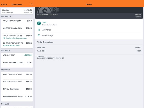 Multi-account view: See all of your financial information (balances, transaction history, merchant spending averages) from your other financial institutions in the River Valley Bank app for on-the-go organization.