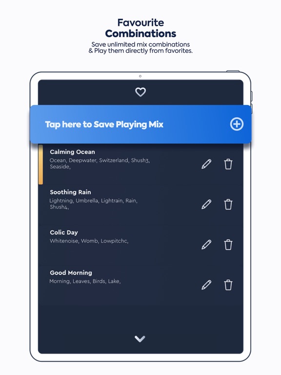 Loops: Rain, White Noise, Zen, Ocean, Waterfall, Birds, Underwater, Chill-Out, Railway, Hair Dryer, Heartbeat, Night, Dryer, Vacuum, Lightning, Wind, Crowd, Classic Music, Car Ride, Fireplace, Flute, and many more...