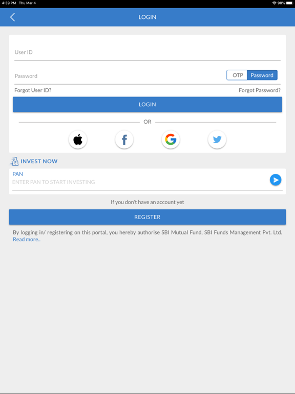 Heralding a new era of mobile investments, SBI MF invesTap is a quick, convenient and efficient app that allows investors to manage investments on the go. InvesTap provides daily NAV updates on Mutual Fund NAVs and investor's portfolio performance enabling investors to plan and invest effectively.