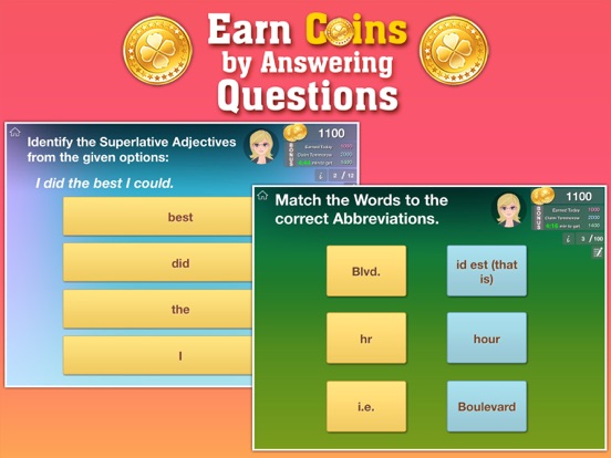 - Rewards, Badges, and Coins transform the boring into cool - so kids love to practice English Grammar everyday online