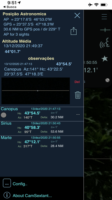 CamSextant allows taking celestial object altitudes using your phone camera and sensors as a marine sextant. For celestial navigation. Point a celestial object and tap the image to capture the altitude and observation time.
