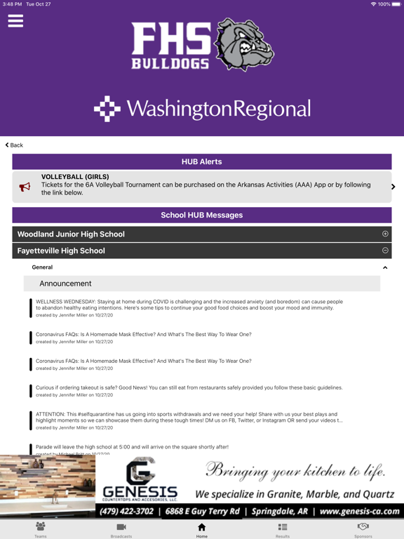 Content is managed by the Fayetteville Bulldog Athletic Department with help of high school students gaining valuable access to emerging and mobile technologies.