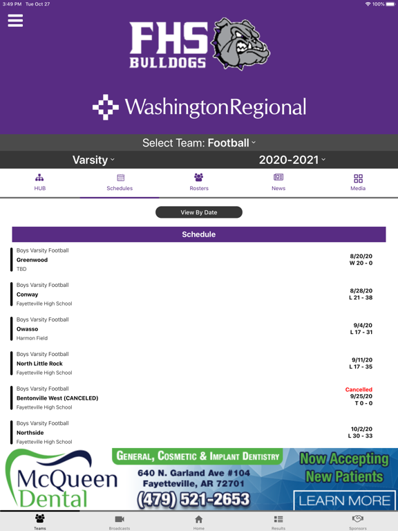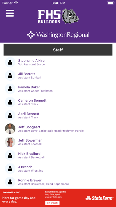 Bulldog fans can now stay up to date around the clock from the convenience of their iOS device. Can’t make it to the game? Watch the LIVE broadcast. Need to know the score of last night’s game? Receive FINAL score alerts moments after games are over, plus breaking news, rosters, and even access to Fayetteville Junior Highs from the NIAAA National High School Sports App.