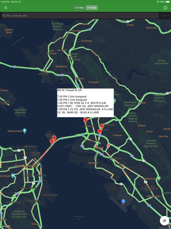 Use simple search phrases like "fire" and "sig alert" to filter the incidents on the map.