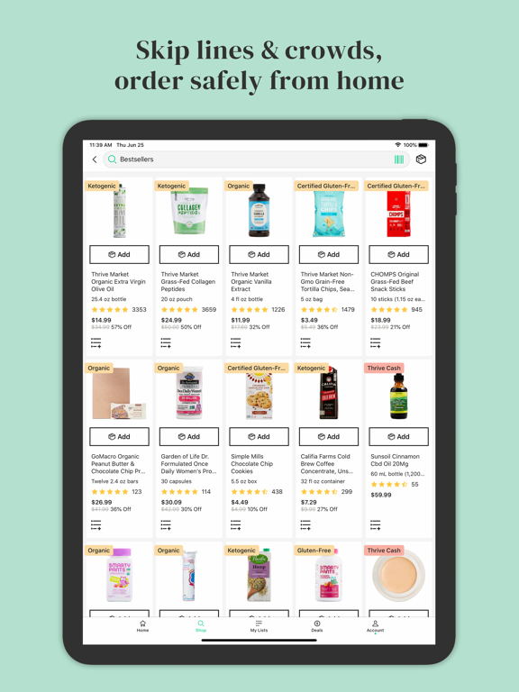 Thrive Market’s mission is to make healthy living easy and affordable for everyone. Join our community of 1 million members to enjoy these great perks: