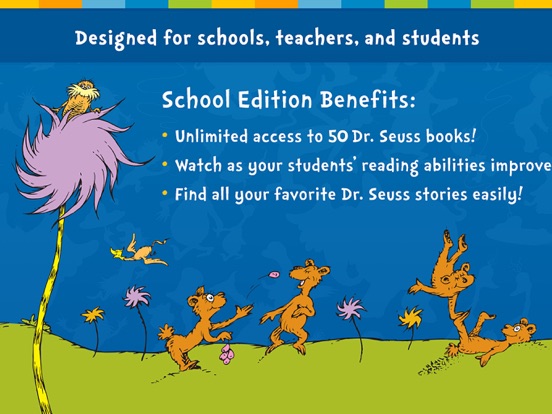 IMPORTANT: DO NOT PURCHASE THIS APP IF YOU'VE ALREADY MADE A PURCHASE IN THE ORIGINAL DR. SEUSS TREASURY. This is the same app as Dr. Seuss Treasury, but designed for schools using the volume purchase program, or those that cannot make In-App Purchases.