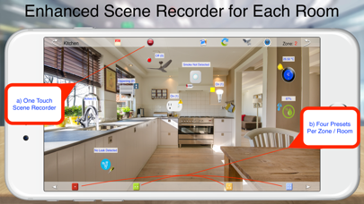 One touch Scene recorder allow you to store 4 presets of all devices together Even from different protocols (for Apple HomeKit, BACnet, KNX) on each zone so it’s like 24 scenes for each room.