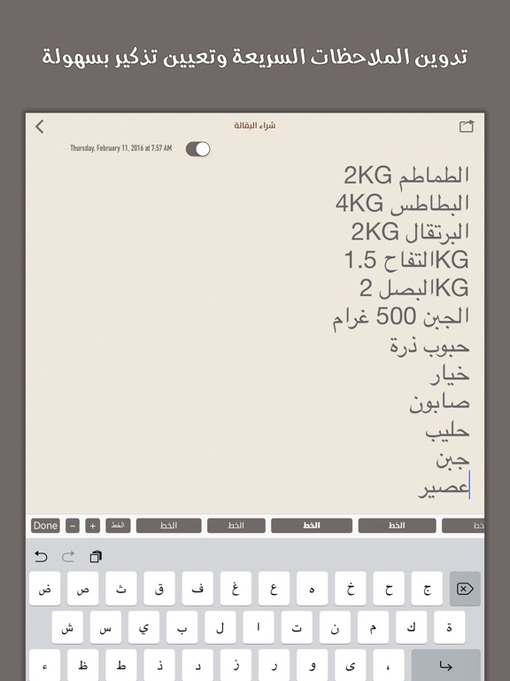 تدوين الملاحظات بسهولة وتعيين تذكير سريعة. تصميم بسيط العربية. طريقة سهلة للحفاظ على الملاحظات، والقوائم، أفكار وأكثر, كل شيء عن السرعة والكفاءة. فتحه، وكتابة بعض الأفكار، والانتهاء من ذلك. يمكنك أيضا مشاركة الملاحظات ونشرها للآخرين.