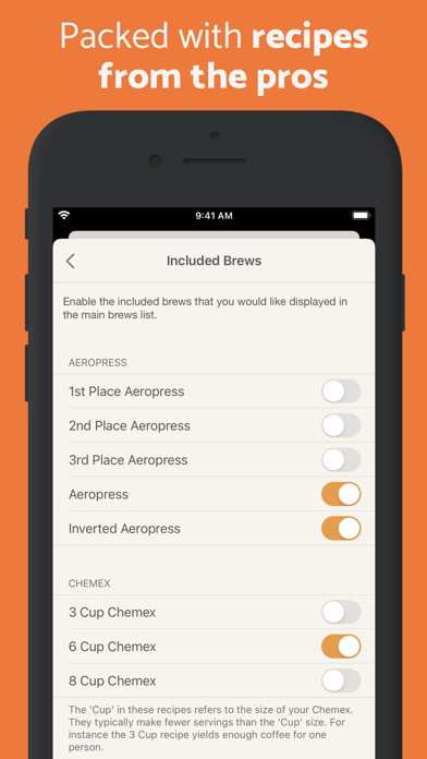 Brew Timer helps you produce a consistently great cup of coffee by guiding you step-by-step through the brewing process. Start with one of the included brew recipes or add your own and tune it to perfection. Brew Timer works with you, no matter what you use to brew.
