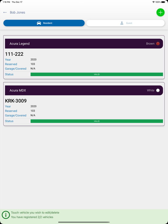 - Allow residents to register temporary vehicles and their guest vehicles