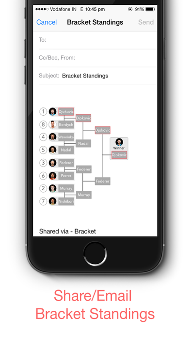 ► SHARE your bracket via EMAIL, FACEBOOK, TWITTER and more.