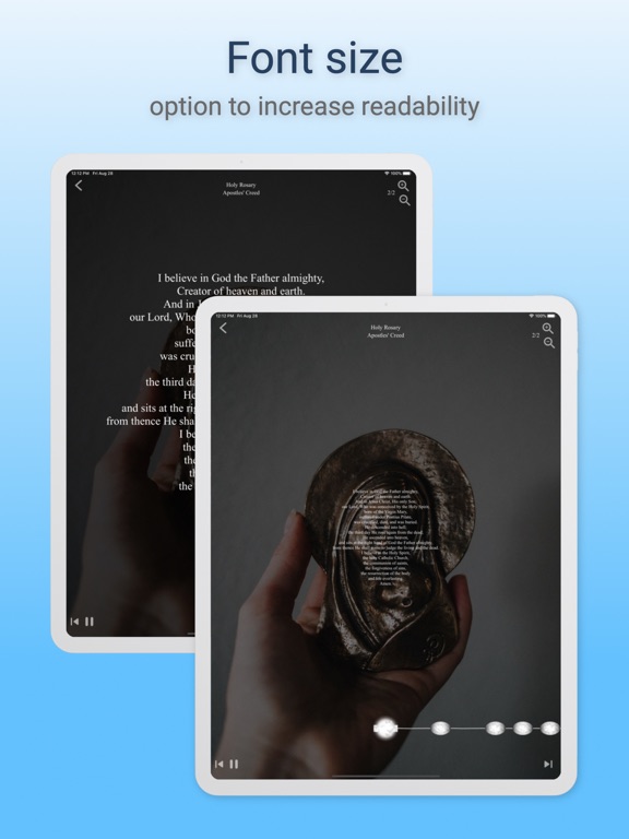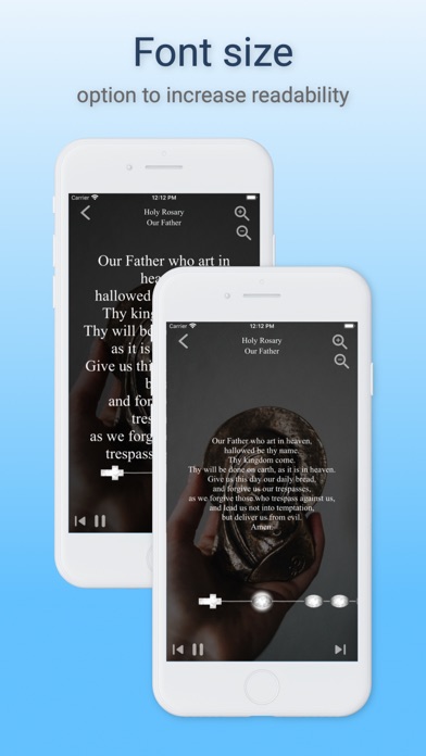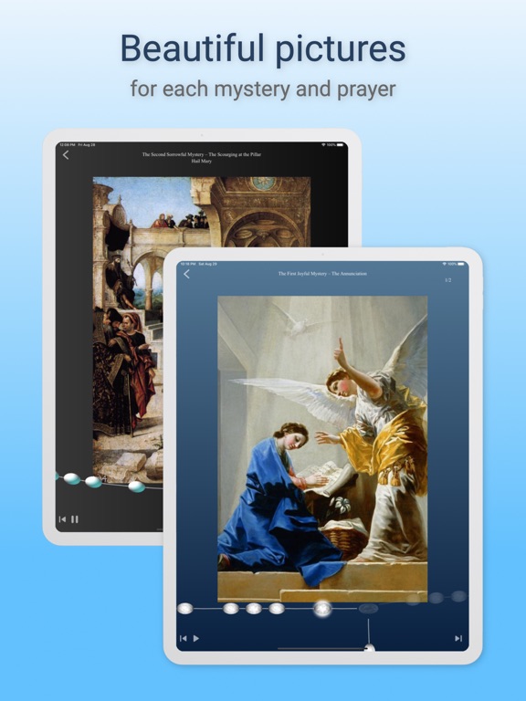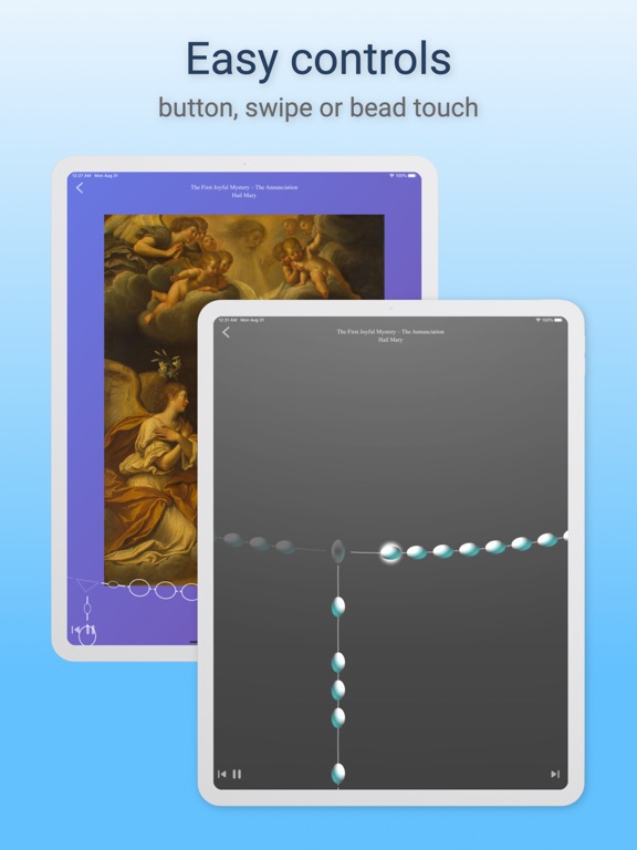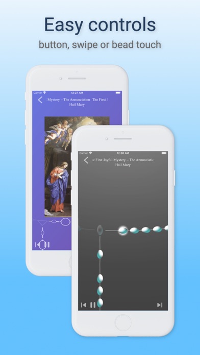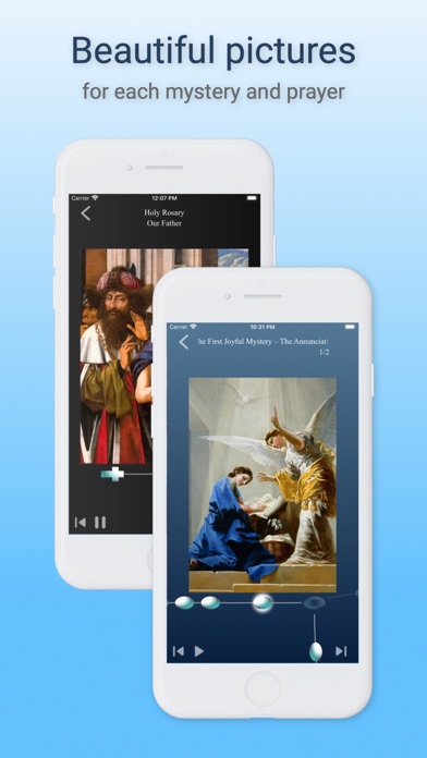 "It is refreshing to find an app that makes you feel like you are saying the Rosary with others. I enjoy that the prayers advance automatically so you can concentrate each prayer. The images shared in the background are spiritual and help keep you focused. I have shared this app on FaceBook in the hopes others will adapt to it. Thank you for creating and sharing this beautiful app."