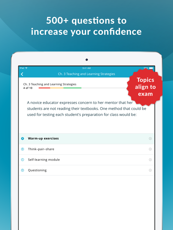 • Detailed results tracking for practice questions, with the ability to flag your weak areas for further review