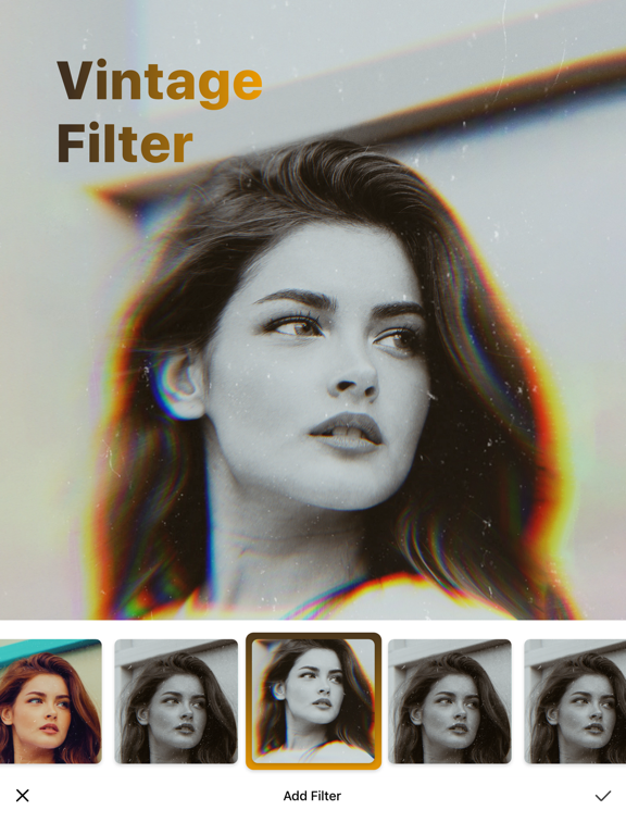 Photo Editor ° lets you selectively combine both color and black & white effect to give your photo more vintage & artistic look.