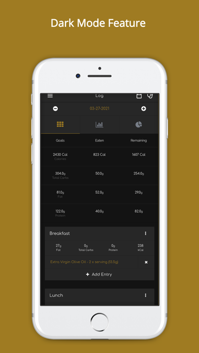 -Daily Calorie, Carb, Fat, & Protein Tracker & Counter to keep you focused.