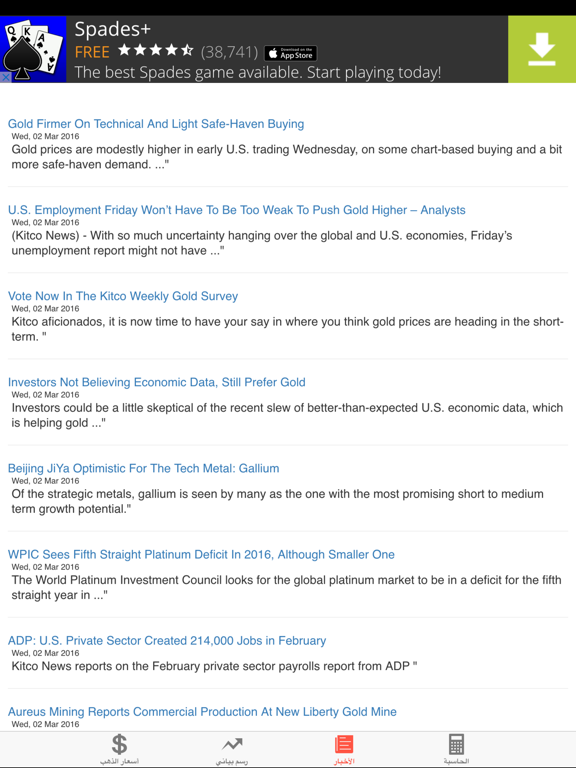 هذا التطبيق يوفر لك اسعار الذهب اليومية بكافة العملات العربية و باكثر من 80 عملة مختلفة *يوفر لك حاسبة للذهب تخضع للسعر الان *يوفر لك اخبار متجددة لتمكنك من معرفة جديد اخبار الذهب *يوفر لك رسم بياني لمعرفة اسعار الذهب في السابق *يتوفر على اكثر من 80 عملة لتختار العملة التي تناسبك