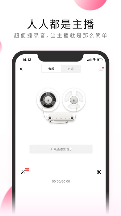 文稿,背景音乐等配置一体,只需录音读,即可快速生成个人录音节目!