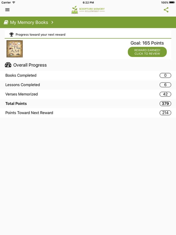 • Earn points as you memorize Scripture, and redeem those points for free rewards