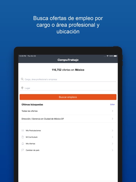 Bájate la App de CompuTrabajo gratuitamente y encuentra directamente en tu móvil tu próximo empleo.