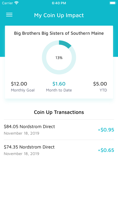 Coin Up is a revolutionary mobile app that "rounds up and donates” your everyday credit/debit card transactions to your chosen charity each month. Turn your everyday purchases into meaningful change!