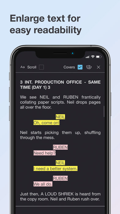 It’s never been easier to read scripts on your phone with the all new mode that allows you to maintain formatting. Adjust by font and size for the ultimate script reading experience.