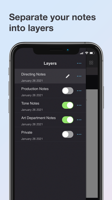 Want to separate notes based on meetings? Or share your thoughts with your department? Scriptation’s annotation layers makes it easy to toggle between your notes.