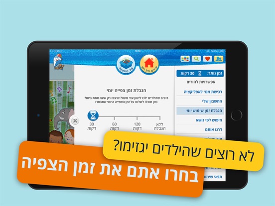 - כלי מיוחד מאפשר להורים לקבוע ולהגביל את משך הצפייה היומית באפליקציה.