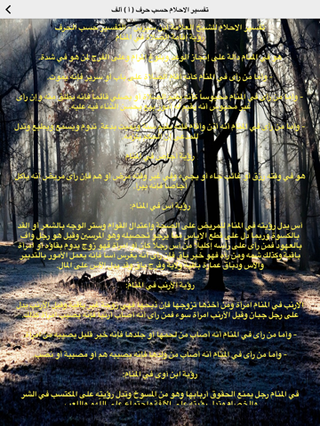تفسير الاحلام في هذا التطبيق مفهرس حسب الحروف الابجدية لتسهيل وصول المستخدم الى تفسير المنام و الحلم