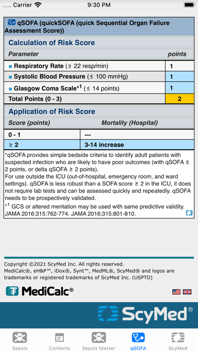 The SEPSIS 3 App (MediCalc®) FEATURES:
