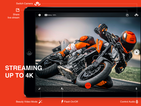 ◆ Live Now enables live streaming to any RTMP server via standard H.264/AAC encoded video.