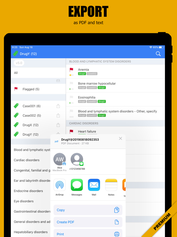 Report the tagged items through AirPrint, PDF export, Text export, and QR codes.