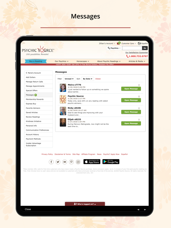 • When an advisor or Psychic Source has sent you a message.