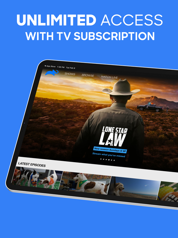 Download the app to watch live TV and episodes of your favorite Animal Planet shows on all your devices. It’s FREE with your TV subscription. Just sign in with your TV provider username and password to get access to favorites like Lone Star Law, The Zoo: San Diego and many more. New episodes are available the same day as premiere on TV.