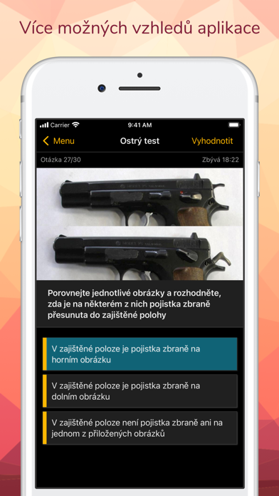 Aplikace obsahuje testy pro všechny běžné typy zbrojního průkazu: