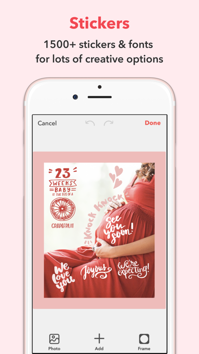 Choose from hundreds of hand-drawn quotes and stickers to add fun decoration to your baby photos.