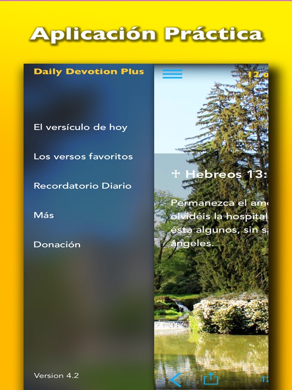 Comparte la aplicación en las redes sociales y programa tu propio plan espiritual a través de nuestro sistema de oraciones seleccionadas, elegí en que momento del día y en qué frecuencia deseas recibir los versos del día en tu celular.