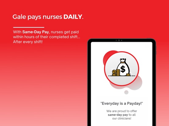 Named after Florence Nightingale, the Gale App empowers clinicians by putting the agency in your hand. Choose when and where you want to work. Get paid within hours after your shift… after every shift, 365 days a year.