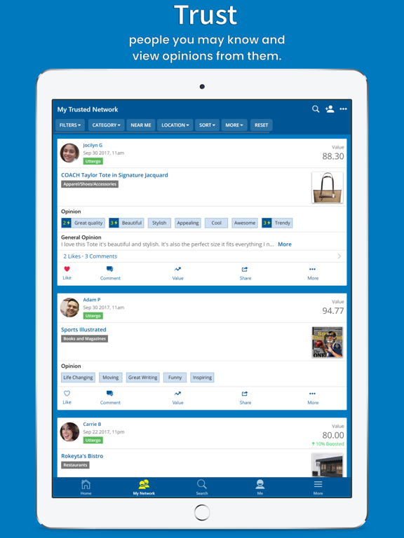 Utternik replaces the outdated star rating system with it's proprietary Value System. All your Word of Mouth recommendations and the content you love or hate in one single app. You can quickly express your Opinions or Reviews about movies, travel, music, books, restaurants, apps, games, hotel, gadgets, TV shows and much more in one single app.