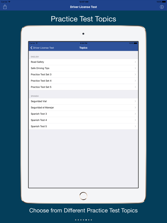 Want to experience the real driver license knowledge test? You absolutely can by trying out the included practice test with more than 550 questions in English and Spanish combined.