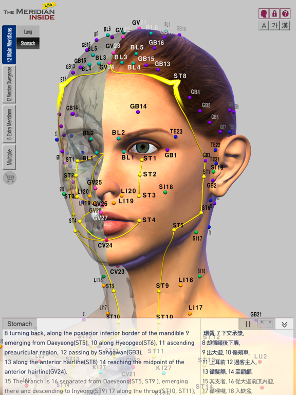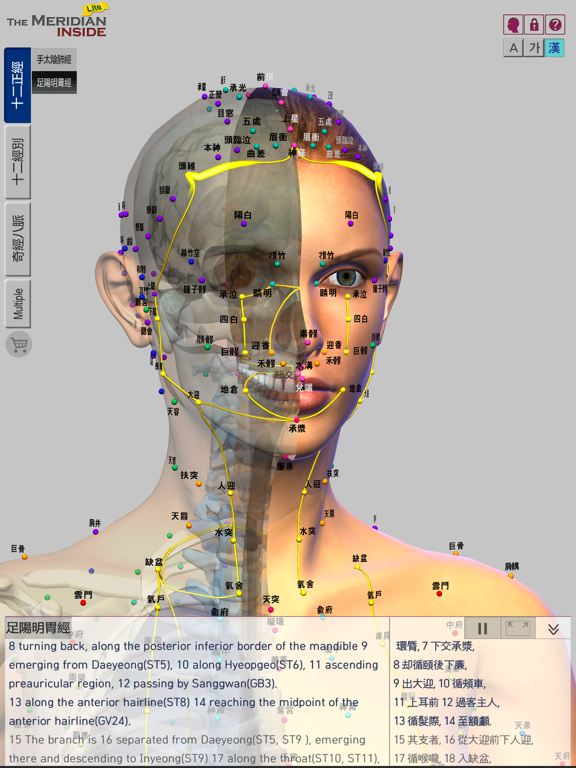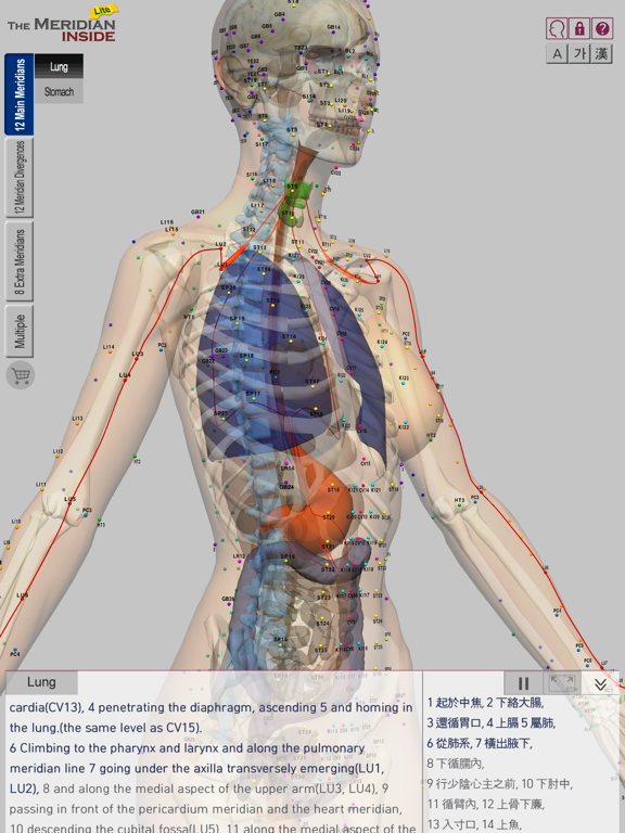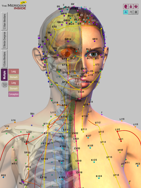 ‘The Meridian Inside of The VerdeRoot’ is easy to use because it displays 12 Main Meridian, 8 Extra Meridian and 12 Meridian Divergences on a 3D human body model. As well as 12 Main Meridian, 8 Extra Meridian, 12 Meridian Divergences and 14 Main Acupuncture Point Meridian are displayed together with accuracy, so you can easily compare between Meridians.