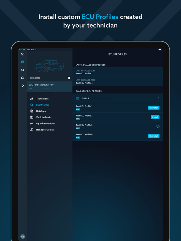 • Install vehicle software updates sent directly to you from your technicians cloud portal