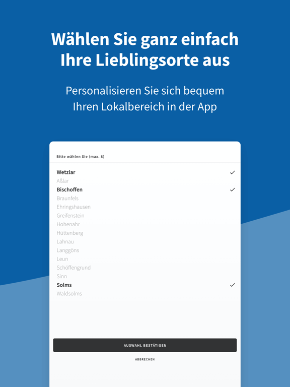 + Beim ersten Start der App wählen Sie Ihre Wunschregion aus. Die Inhalte der App passen sich automatisch an.