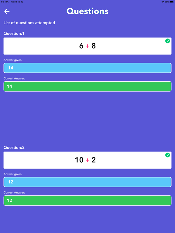 Test Mode:- Two type of tests1) Auto :- In this test mode of math learner app , user has a specific time period to answer the question. If user fails to answer question specified time interval, app will change or move to next question. During test mode user will get questions as per the levels completed during learning mode and difficulty level set in settings page of the app.