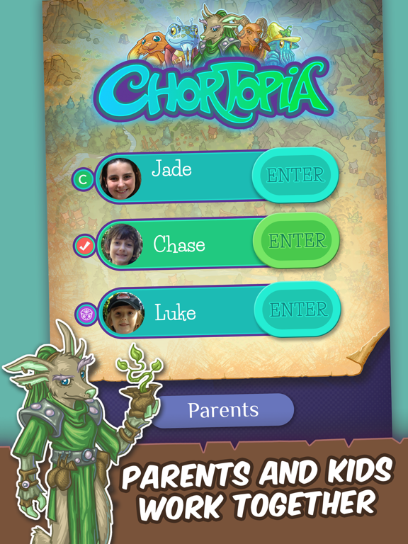 Chores become “Advenchores” in the land of Chortopia! Kids love, stories, playing games, and collecting. Chortopia chore app combines them all in a fun, engaging experience.