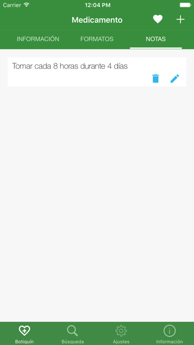 Puede crear su propio Botiquín que contiene los medicamentos señalados como favoritos y obtener una copia en PDF del prospecto y la ficha técnica de cada medicamento guardándolo en la carpeta Mis Prospectos para poderlo consultar en cualquier momento.