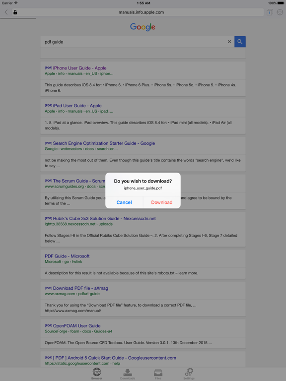 DownThemAll (formerly known as Downloads Lite) features a Web browser that lets you save files to your iPhone, iPad or iPod touch so that you can work with them offline. It has a built-in file manager, with robust viewer for all iOS supported document types, powerful photo browser, advanced PDF reader, wifi sharing support, and more.