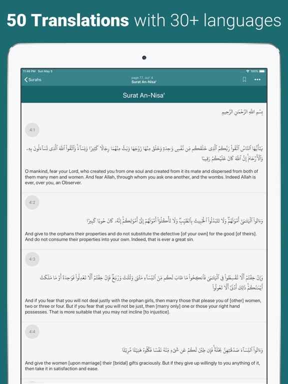 من صناع Quran.com يأتي تطبيق القرآن للأجهزة المحمولة، تطبيق للمصحف ذو صفحات جميلة خالي تماما من الاعلانات.